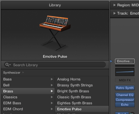 Например, вот то, что загружается, когда вы выбираете патч для программного инструмента с названием Emotive Pulse: